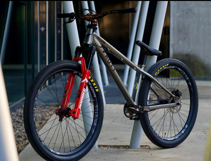Wer springen will wie Dorian Macher, der sich zumindest equipmenttechnisch dafür rüsten. Der Dirter des Steirers stammt von der Tiroler Manufaktur HOTT Cycles und ist dank Dorians Einsätzen auf’s Härteste erprobt.